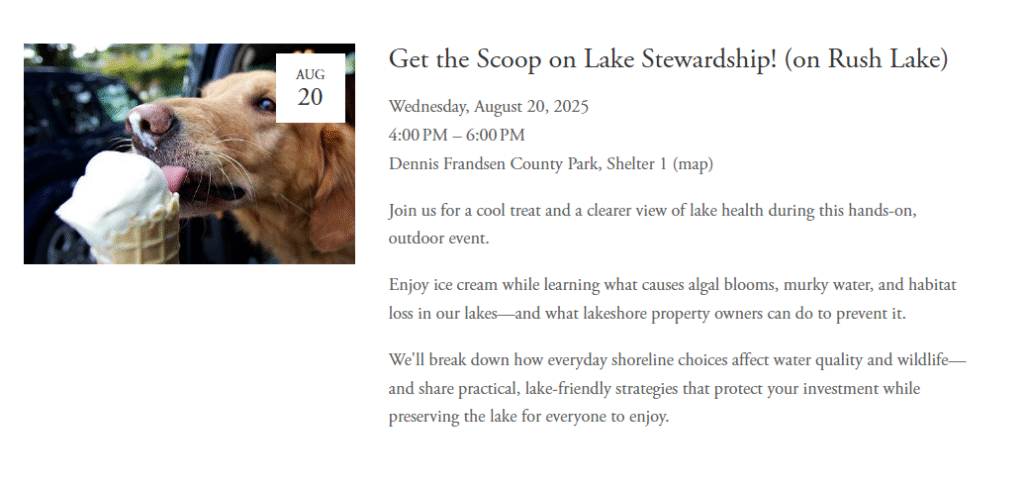 Upcoming Chisago County Events Post author:rliawebmaster Post published:August 5, 2025 Post category:News You Might Also Like Sidelines & Grumpy Minnow April 6, 2020 Rush Lake Eutrosorb Demonstration Project January 21, 2025 RLIA December meeting 12-19-2020 December 14, 2020